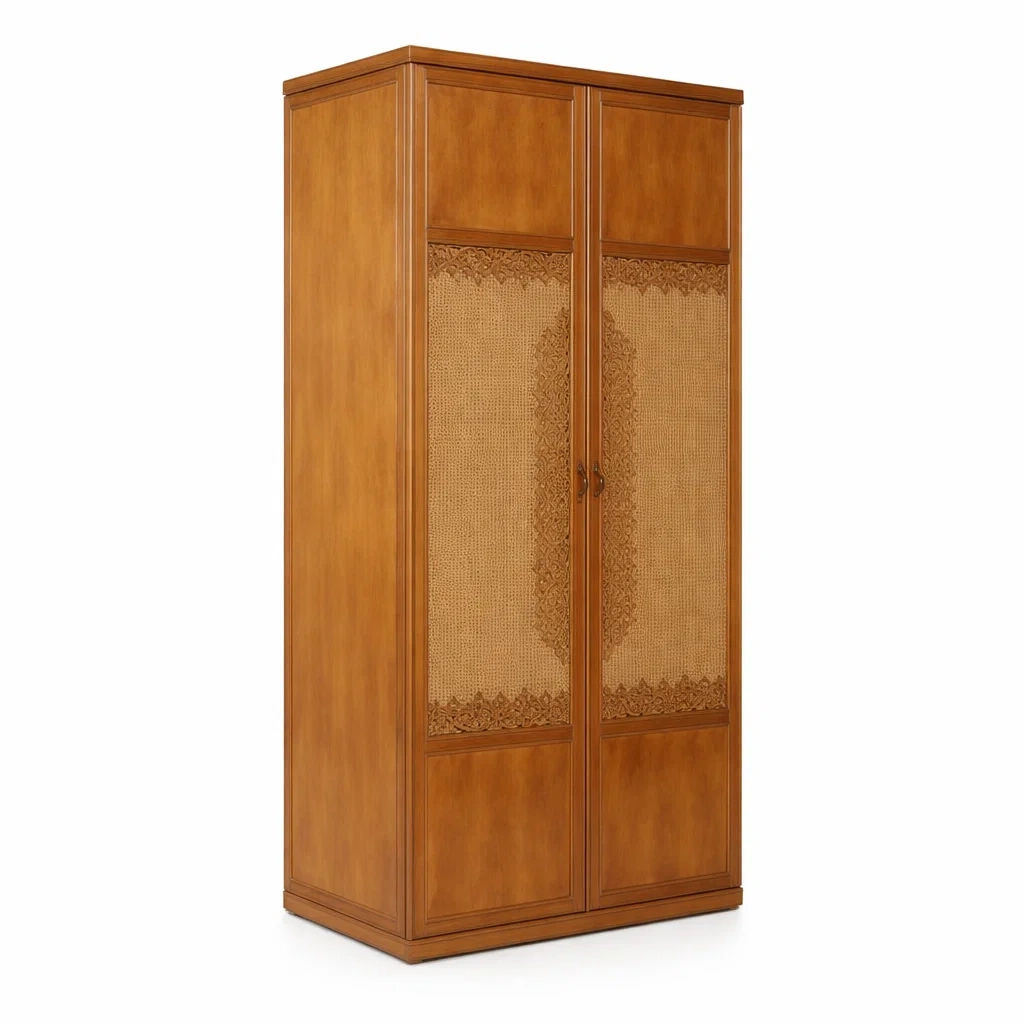 Kleiderschrank aus Holz mit Rattan Türen zwei Türen