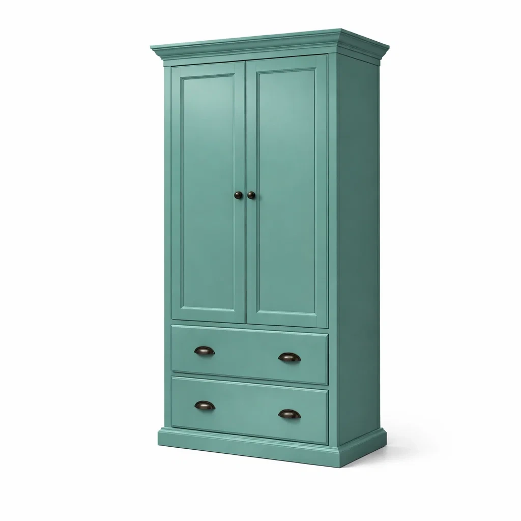 Holz Kleiderschrank Grün mit zwei Türen und zwei Schubladen